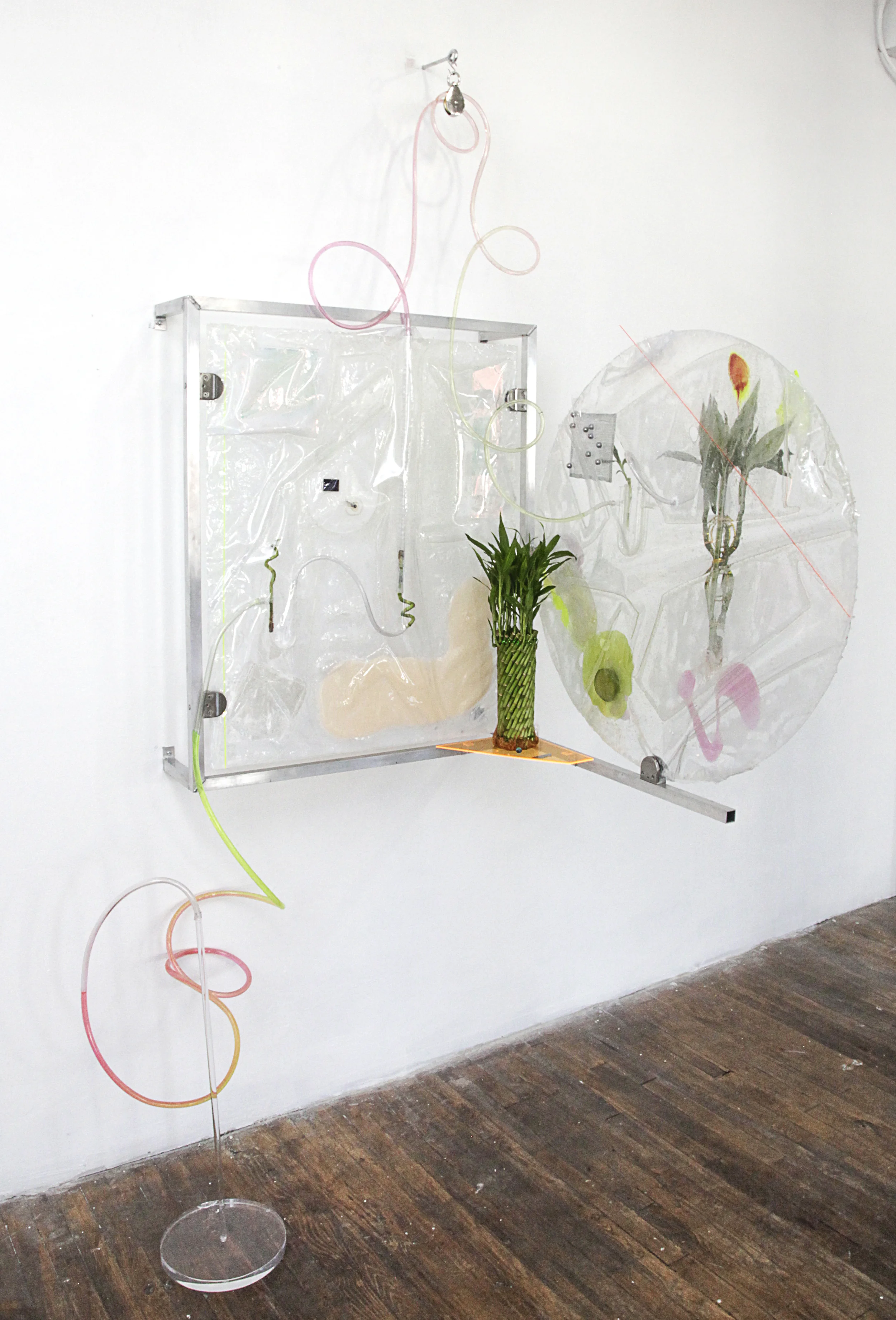 Heidi Norton, The Plight (feeding Systems), 2015, Acrylic, dielectric glass, resin, vinyl, bamboo, tubing, electrodes with thermal switch,