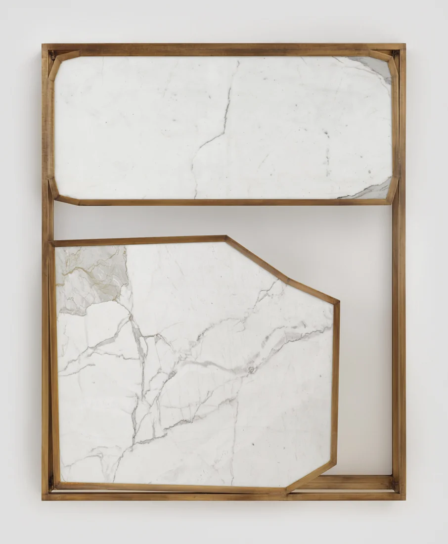 Sam Moyer Marshall Field's 2015 Bronze and marble, 70 x 56 x 6". Courtesy of the artist and Kavi Gupta Gallery